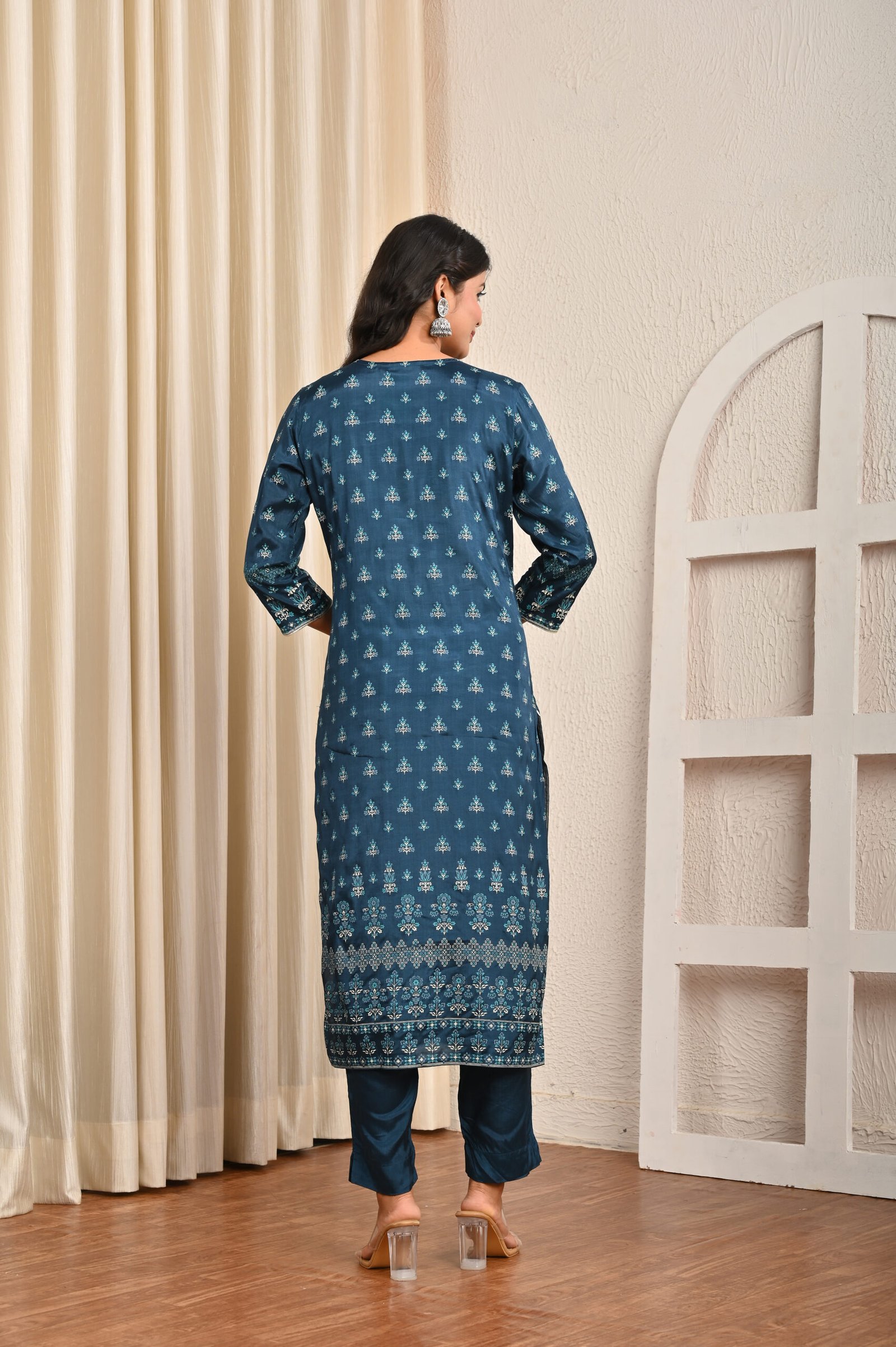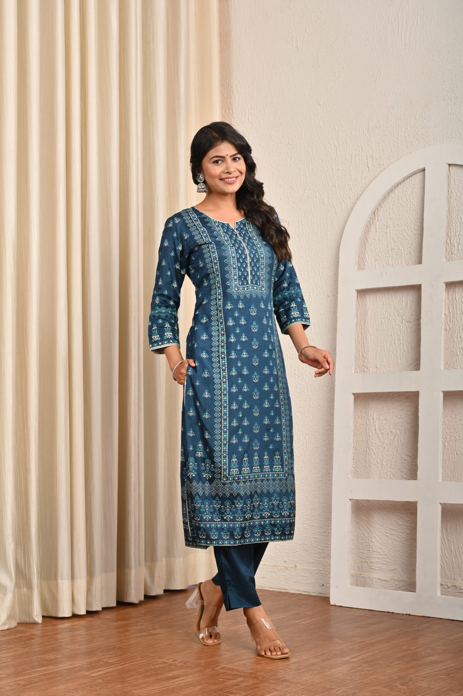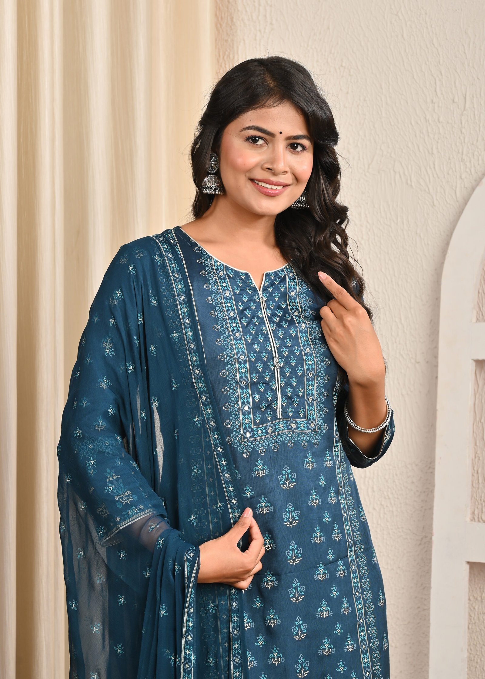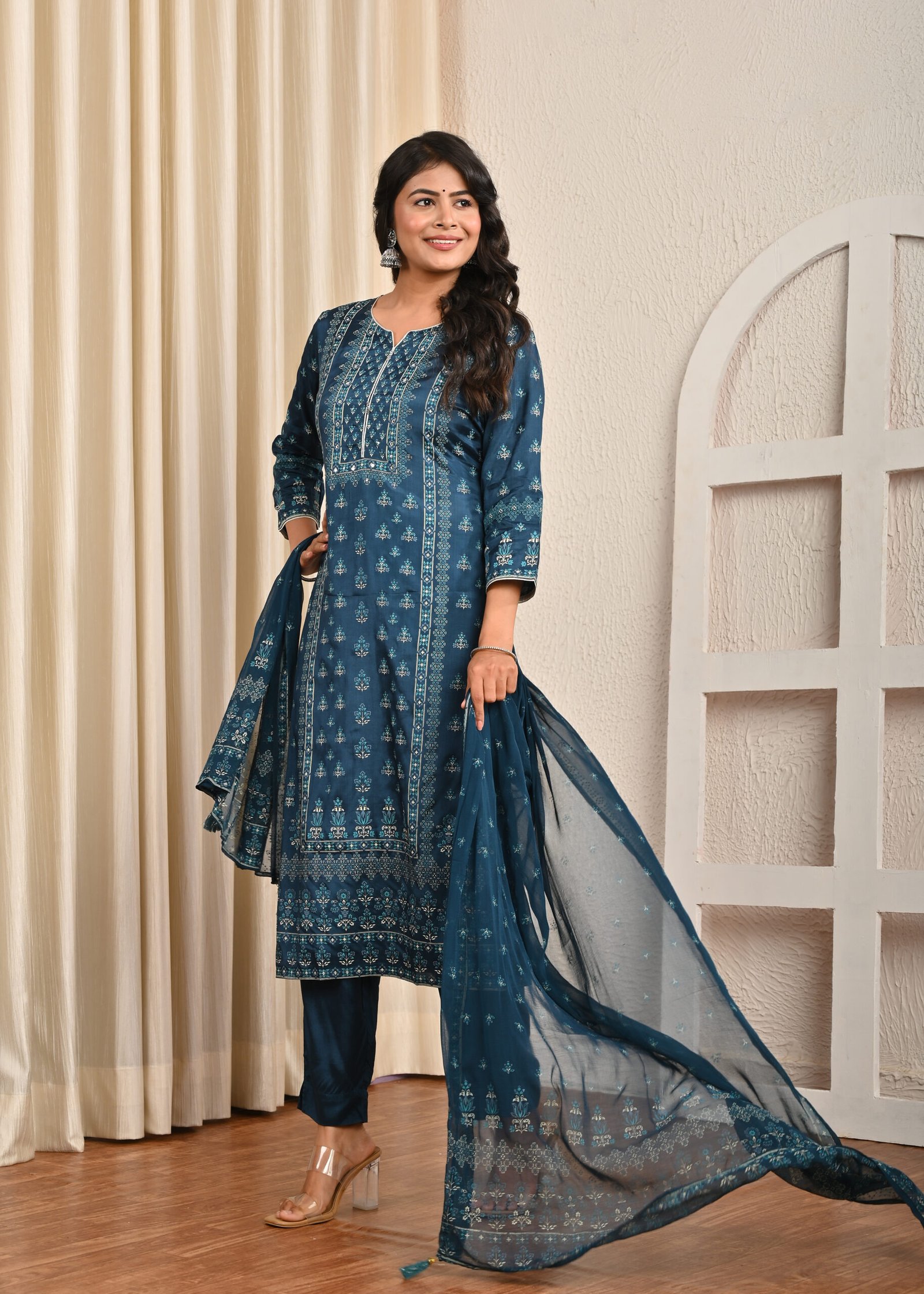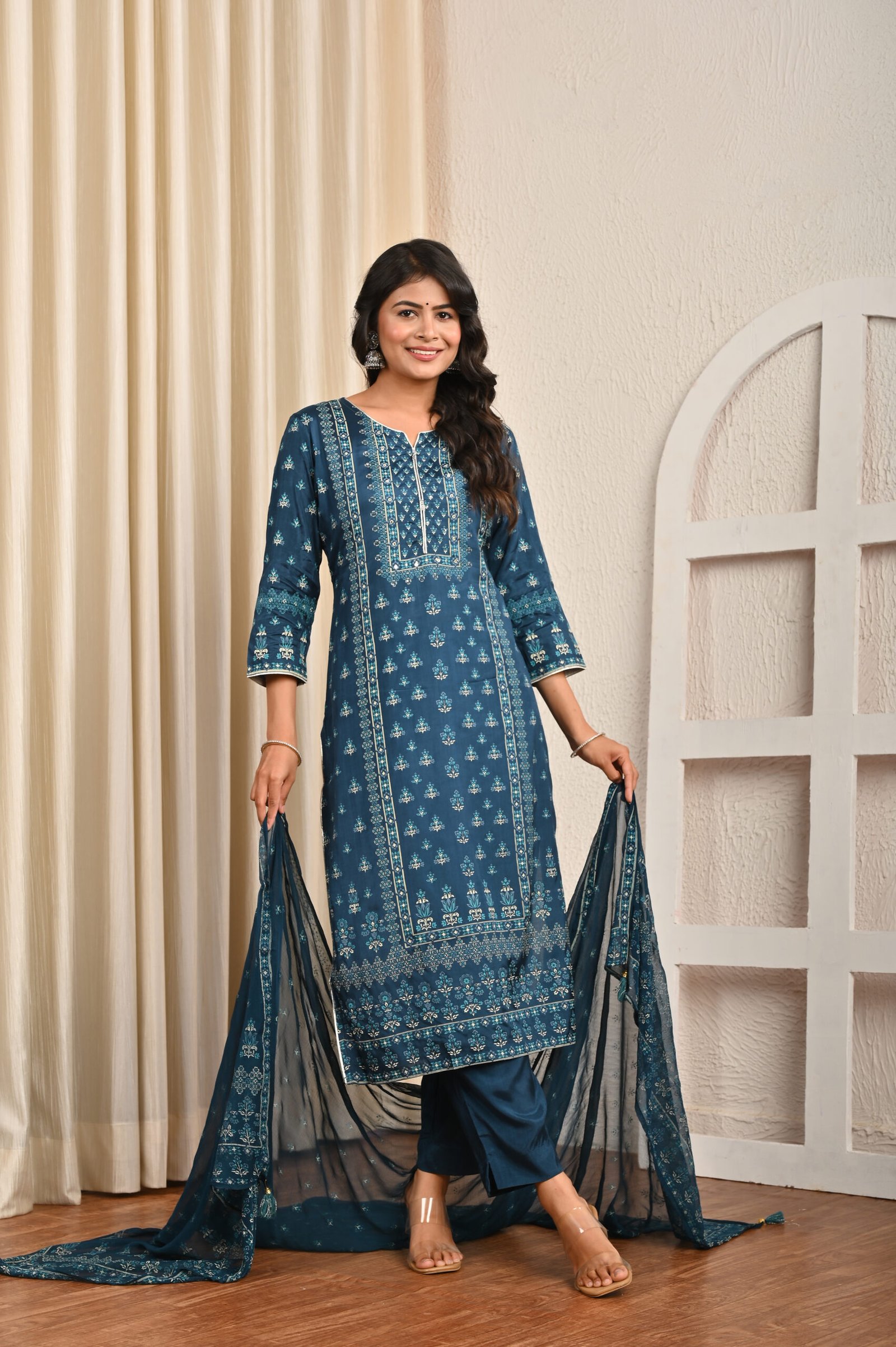 Type: Traditional ethnic set – Kurta, Pants, and Dupatta.