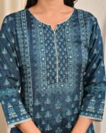 Color: Blue with printed motifs.