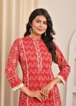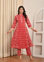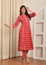 Cotton Printed R.Mahroon A Line Kurta Pant Set