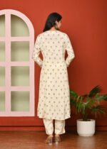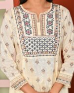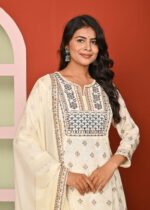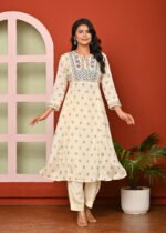 Be the first to review “Cream Print & Embroidered Santoon A Line Kurta Pant and Dupatta Suit Set” Cancel reply