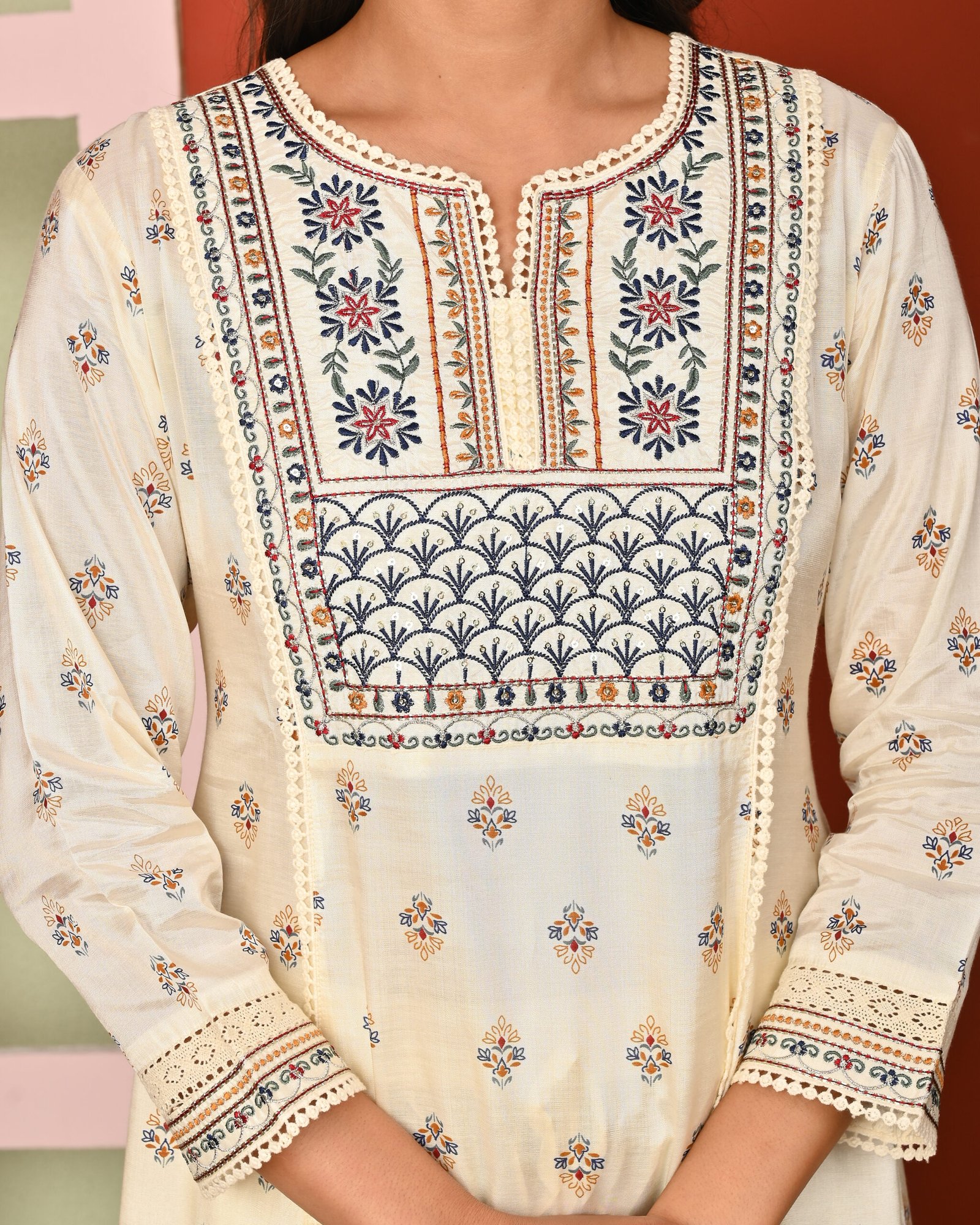The Cream Print & Embroidered With Lace Work Santoon A-Line Kurta Pant and Dupatta Set is all about effortless elegance. Made from soft, breathable Soft Santoon, it keeps you comfortable while looking stylish. Delicate embroidery and traditional prints add charm to the flowy A-line kurta, paired with matching pants and a dupatta for a complete look. Whether it’s a casual day out or a special celebration, this set blends timeless craftsmanship with a touch of modern style.