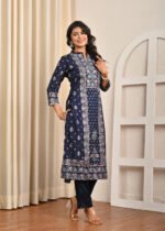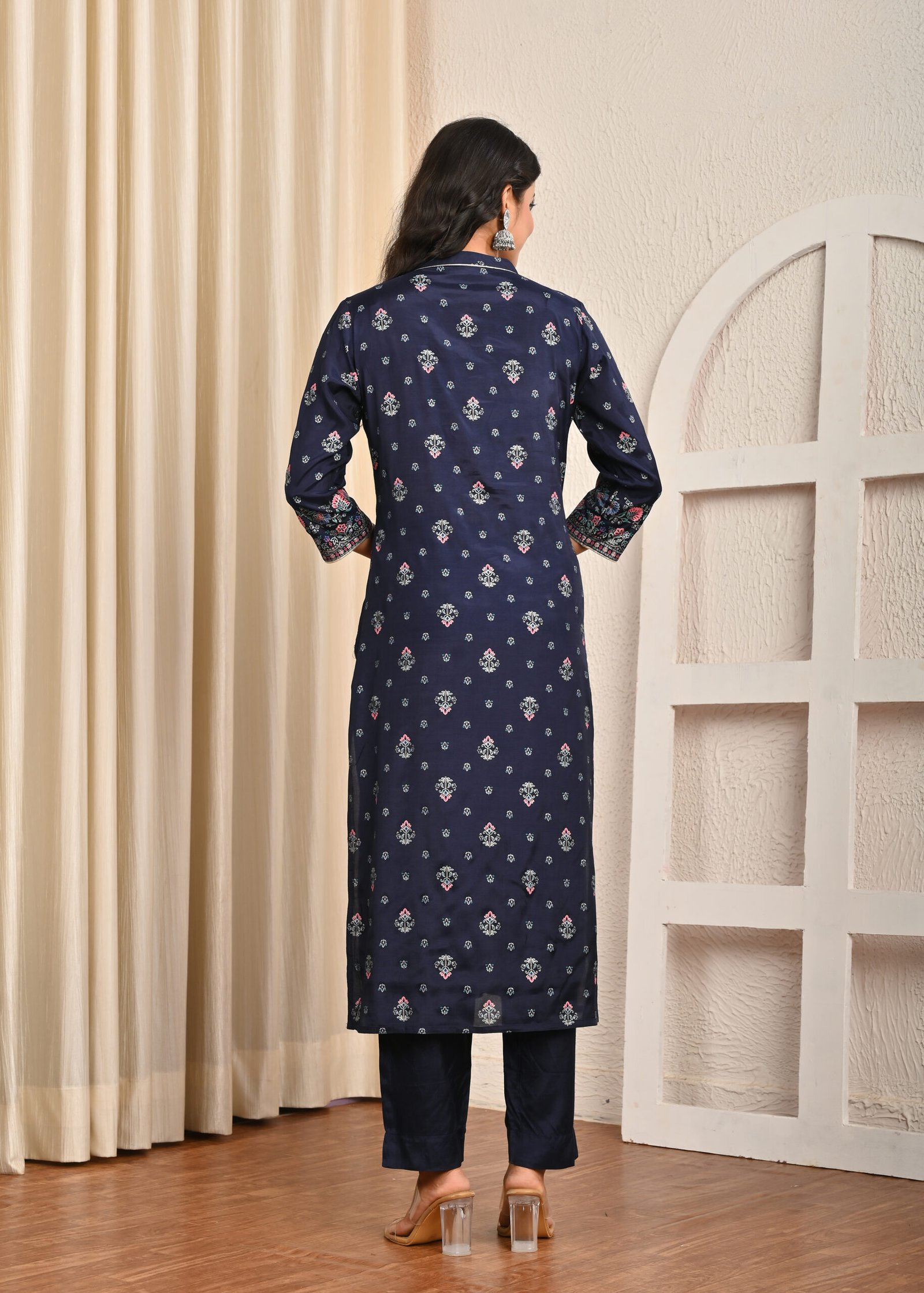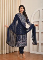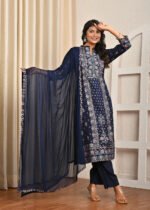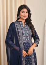This navy blue Santoon suit is the perfect blend of tradition and modernity. With its elegant Handwork, soft fabric, and versatile style, it is sure to become a timeless addition to your ethnic wardrobe.