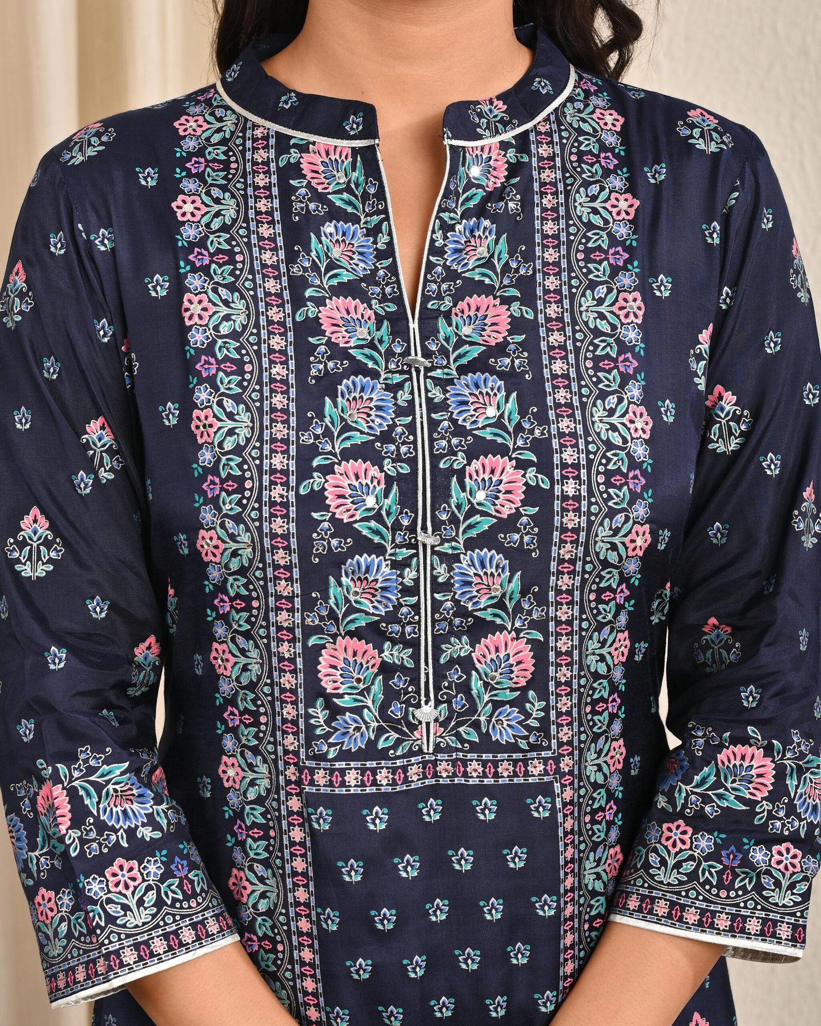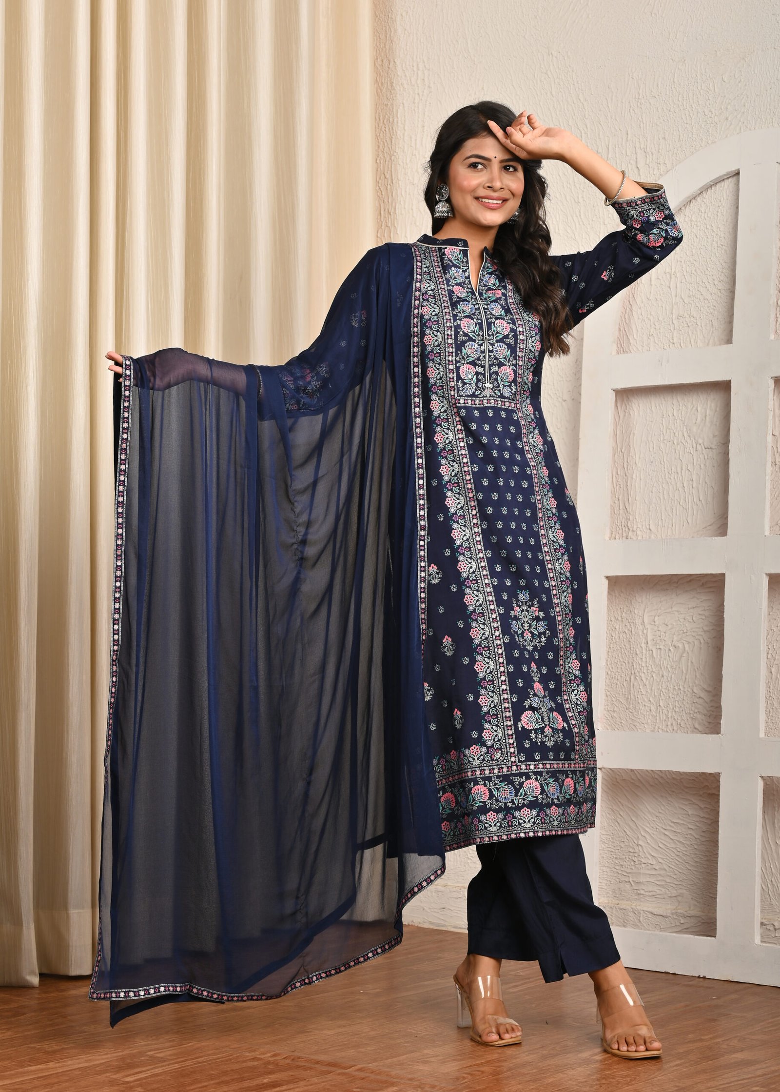 Color: Navy Blue with multicolor floral Handwork